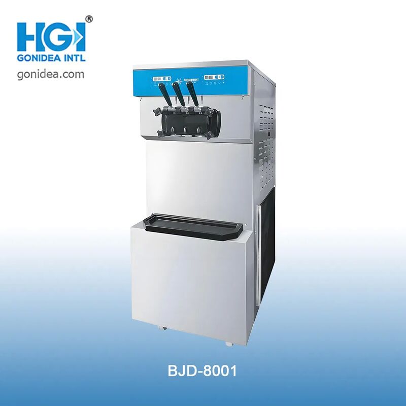 Podwójne łopaty z niezależnymi dwoma systemami umożliwiają jednocylindrowe sterowanie startem i zatrzymaniem, maszyna działa Może lepiej spełniać potrzeby różnych wyborów. Dwa importowane sprężarki Tecuumseh 3HP. Temperatura cylindrów zamrażających osiągała -25°C, a lód temperatury śmietany do -7°C, co powoduje wysoką twardość i wolną szybkość topnienia lodów. Funkcja wstępnego chłodzenia dodana do łopaty przedłuża czas przechowywania lodów i zmniejsza ryzyko wystąpienia pogorszenie się zanieczyszczeń w środowiskach o wysokiej temperaturze. Zastosowany wysokiej wydajności wentylator chłodzący wirnika zewnętrznego zapewnia lepszy efekt rozpraszania ciepła. Wysokiej klasy system tuning +inteligentna logika sterowania. Nie martw się o problemy z zamrażaniem cylindrów, bez wyładowania, i lodów miękkich podczas ciągłej pracy.